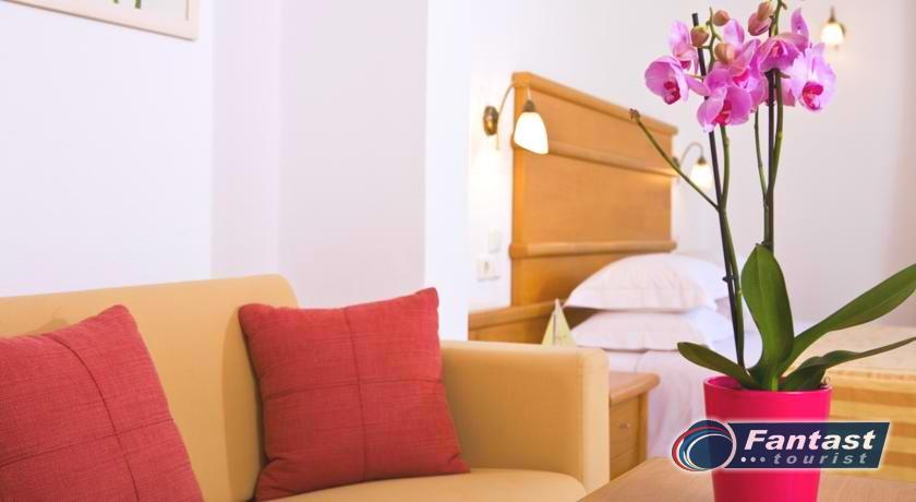 Sadrzaj: Hotel ima bazen sa morskom vodom, lezaljke i suncobrani pored bazena i peskiri su dostupani svim gostima bez naknade, bar pored bazena, TV salu, igraliste za decu, besplatan WiFi, parking, ftnes sobu, saunu.