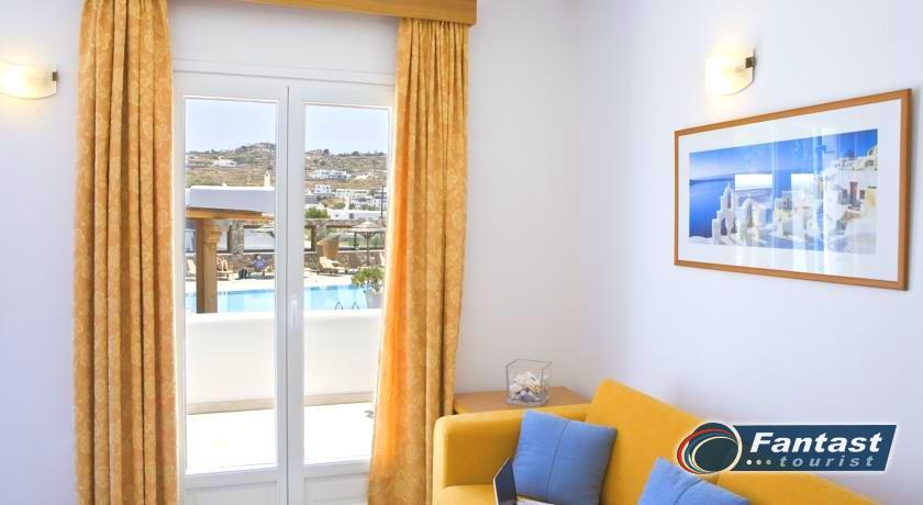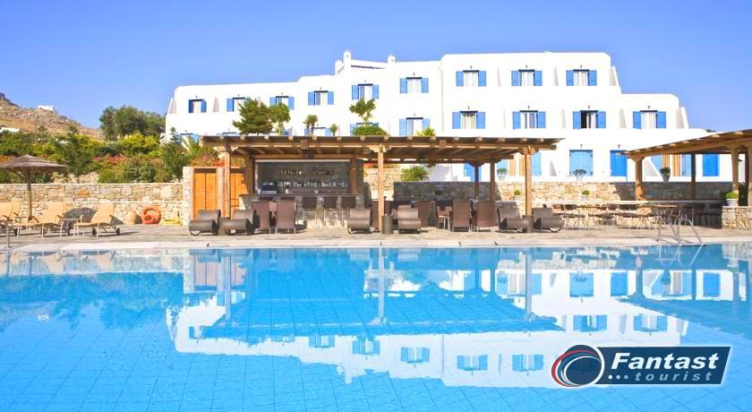 Lokacija: Hotel se nalazi u Ornosu, 300m od pescane plaze i 3,5km od Mikonos grada. U blizini hotela je supermarket I autobuska stanica.