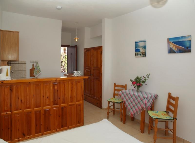 Lokacija: Studija se nalaze 250m od peščane plaže u mestu Ag Paraskevi. U blizini studija nalaze se kafići, restorani, super marketi i autobuska stanica (odlična povezanost sa gradom i velikim brojem plaža na ostrvu). Aerodrom je udaljen 8km, grad Skijatos 7km, a poznata Kukunaries plaža 4km. Agia Paraskevi plaža se nalazi u istom zalivu sa plažama Kolios i