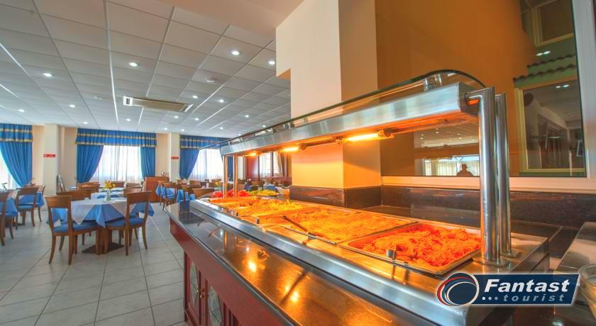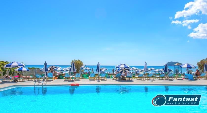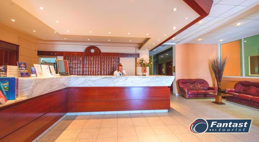 Hotelski sadržaj: recepcija, lobi, restoran, bar, bazen, dečiji bazen, ležaljke pored bazena (uz doplatu), bar pored bazena.