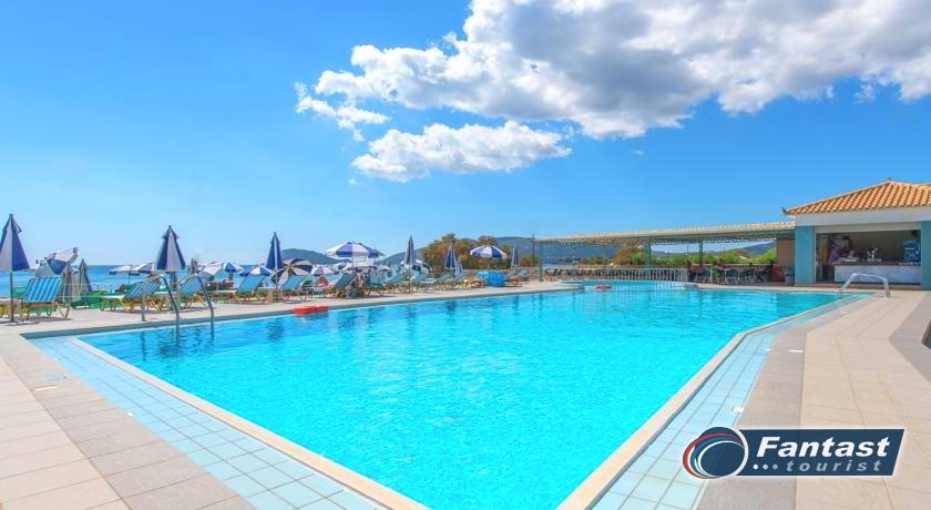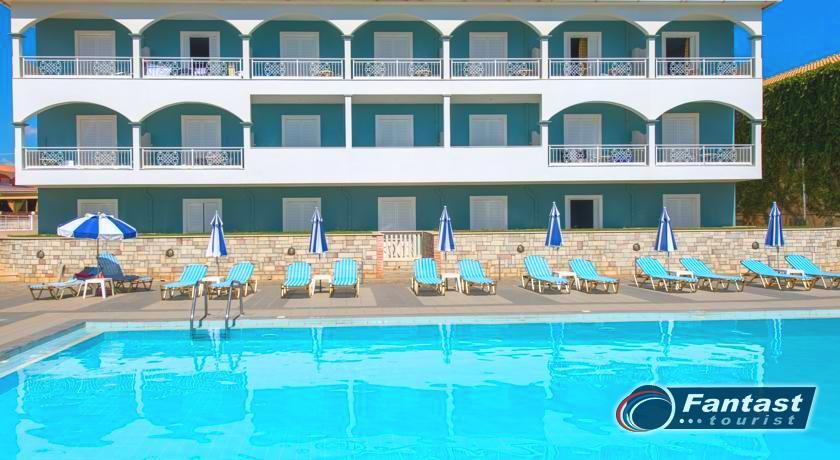 Lokacija: nalazi se na dugoj i širokoj peščanoj plaži, oko 800m od centra mesta Laganas u kojem je koncentrisan najveći broj restorana, taverni i prodavnica, dok se prve prodavnice i restorani mogu naći u neposrednoj blizini hotela. Od grada