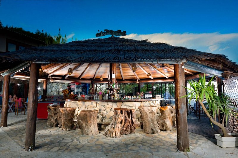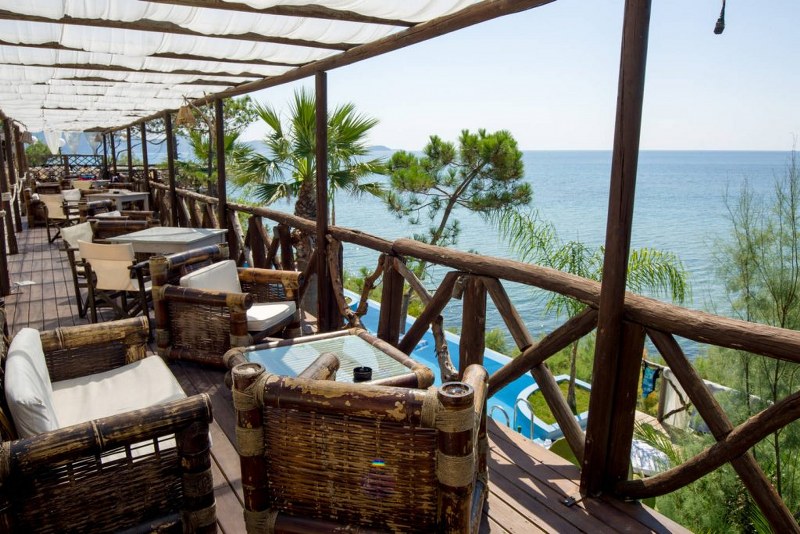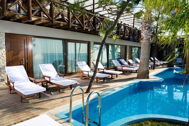 Hotelski sadržaj: recepcija, lobi, bazen, bar pored bazena, ležaljke na terasi