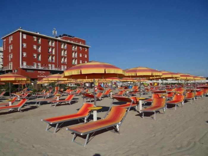 - Opis hotela:HOTEL ,, BLUMEN’’*** - www.blumenhotel.com – smešten je na samoj plaži, u delu Riminija koji nosi naziv Viserba. Hotel poseduje restoran, terasu, bar,lift, sef na recepciji, tv salu, besplatan internet. Dozvoljeni mali kućni ljubimci, bicikli na usluzi gostima. Sve sobe imaju kupatilo, terasu,telefon, TV i klima uređaj (na upit uz doplatu). Usluga je: doručak-bufet,a večera –meni (izbor najmanje 3 jela).