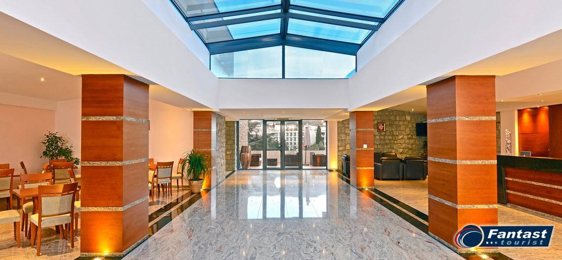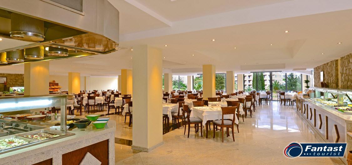 Sadržaj: Hotel se sastoji iz tri zgrade, poseduje lobi sa recepcijom i sef boksovima, internet kutak, igraonicu za decu, restoran, piano i lobby bar, bar na terasi, bazenu i plaži, snack bar, otvoren bazen na terasi sa suncobranima i ležaljkama, wellness centar, unutrašnji bazen, đakuzi, masaže, kozmetički salon, solarijum, sopstvenu plažu i parking.