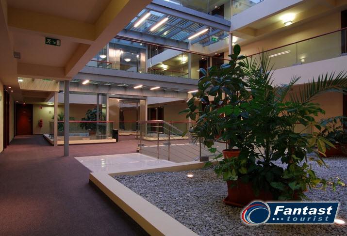 Sadržaj: Hotel poseduje recepciju, restoran, a la carte restoran, lobby i piano bar, bar na bazenu, banket salu, konferencijski cenar, Wellness i Spa sa otvorenim i zatvorenim bazenom, rimska i finska sauna, tursko kupatilo, hidromasažni krevet i kada, salon lepote, solarijum, frizerski salon, masaža, soba za relaksaciju, fitness centar, teretana i parking.