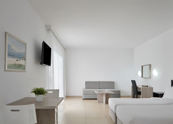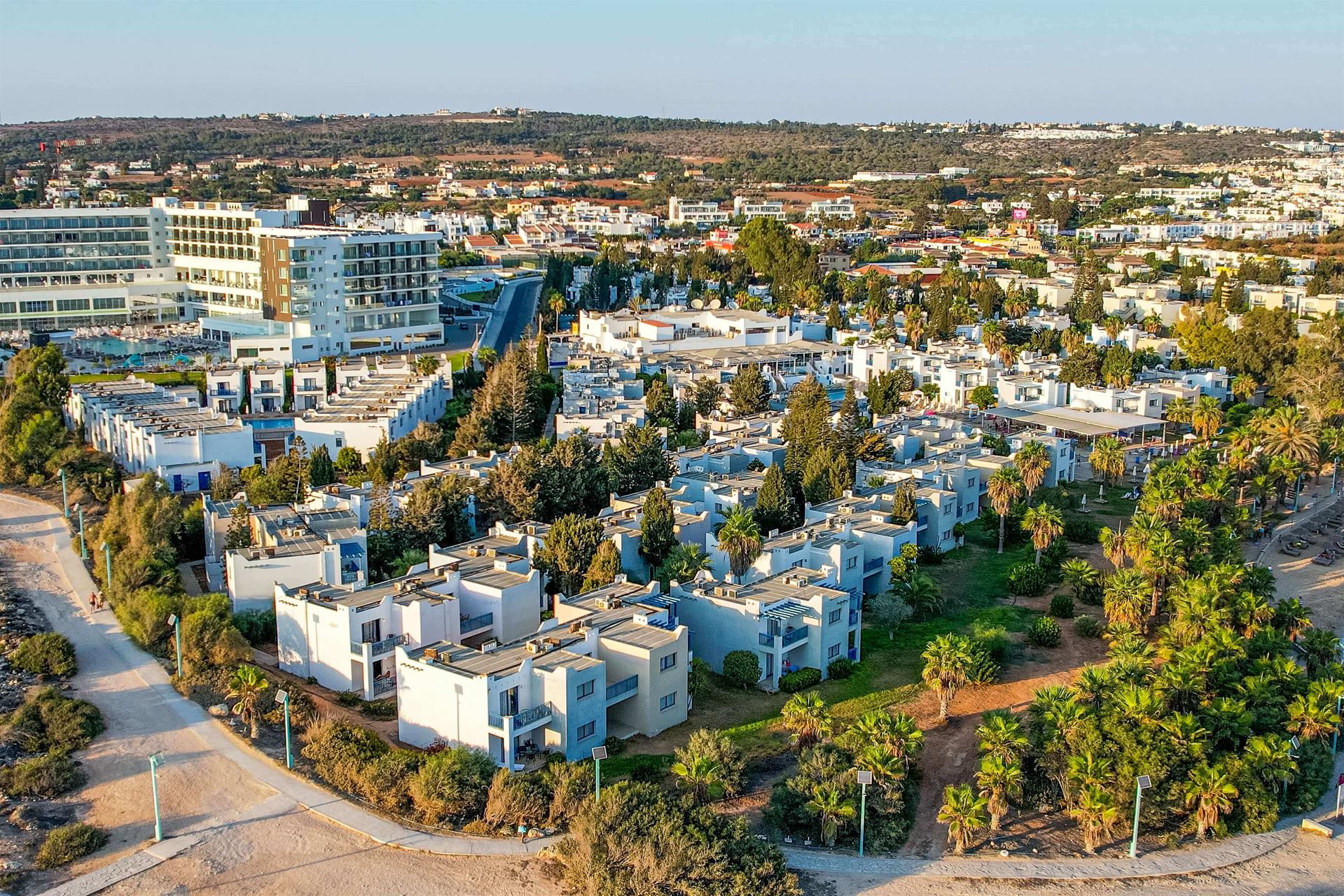 Lokacija: nalazi se u mestu Aja Napa na samo nekoliko minuta hoda od glavne ulice, okružen sa dosta zelenila na obali mora, 200 metara od peščane plaže Vathia Gonia u blizini mnogih restorana i prodavnica, od aerodroma je udaljen 32km.