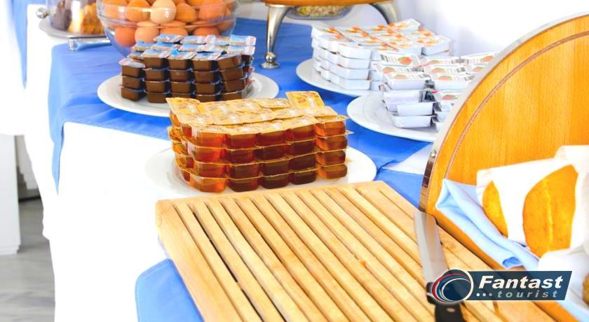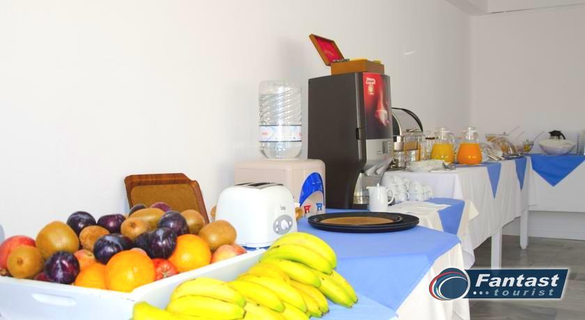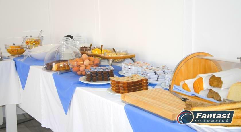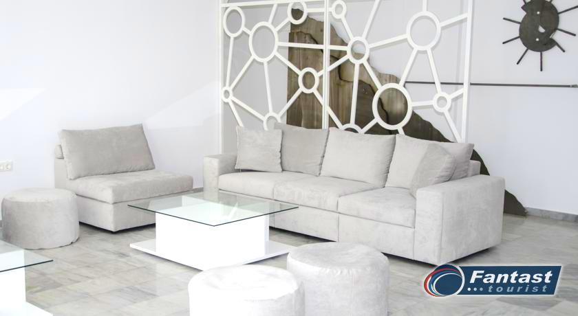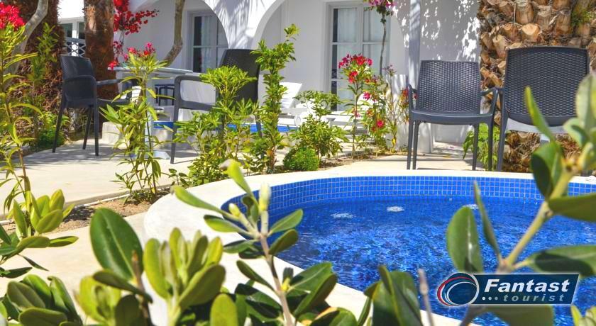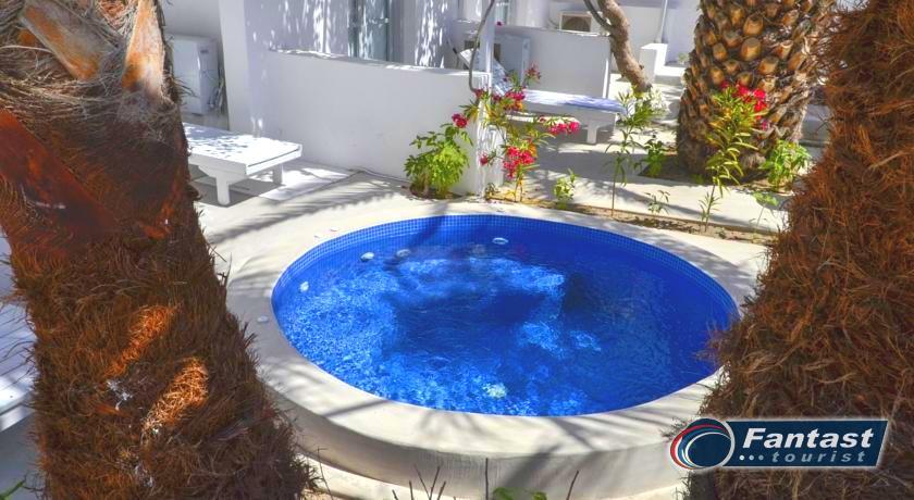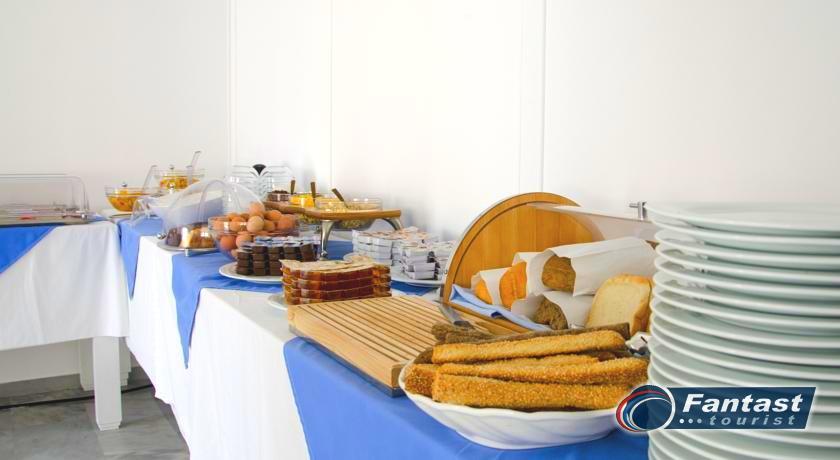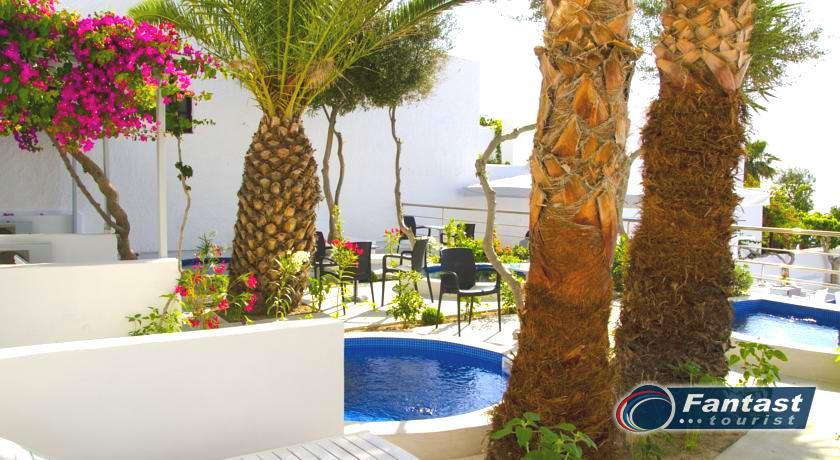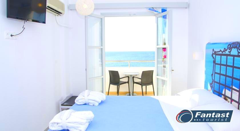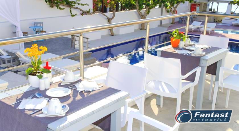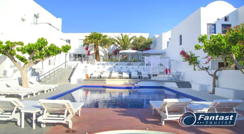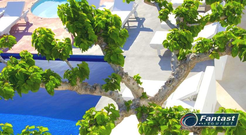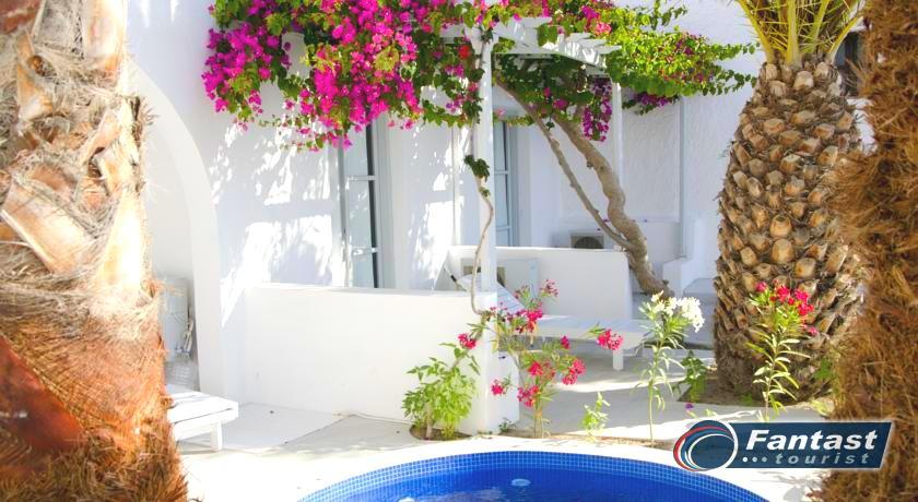 Lokacija: Hotel je smešten preko puta plaže (deli ih šetalište), u centru mesta Kamari. Hotel je potpuno renoviran ove godine. Sagrađen je u tradicionalnom stilu i u blizini je restorana, taverni, barova i prodavnica. Hotelski sadržaj: Hotel ima baštu sa dosta zelenila, salu za doručak, TV salu, bar, snack bar pored bazena, restoran, bazen, ležaljke i suncobrane, sef (uz doplatu), recepciju,menjačnicu,malu teretanu... Sobe: Sve sobe su sa klimom, SAT TV, frižiderom, telefonom, radiom, kupatilom sa fenom za kosu, balkonom,/terasom, sef (uz doplatu). Usluga: Noćenje sa doručkom (švedski sto-samoposluženje).