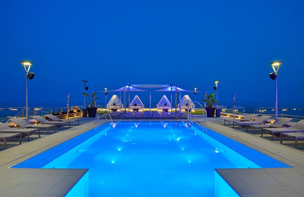 Hotel se sastoji iz dve zgrade. U sklopu hotela nalaze se recepcija, restoran, koktel bar, bar pored bazena, wellness centar i spa (uz doplatu), teretana (otvorena 24h) i zatvoreni bazen. Na krovu hotela pored bazena, smešten je bar u kome gosti hotela (16+) mogu da uživaju u hrani i piću i divnom panoramskom pogledu. Ležaljke i suncobrani su besplatni dok se peškiri mogu dobiti uz depozit. U toku dana i noći organizuju se aktivnosti i zabave, predstave kao i žurke i nastupi popularnih svetskih DJ-va. Wi fi internet je besplatan i dostupan u celom hotelskom kompleksu.