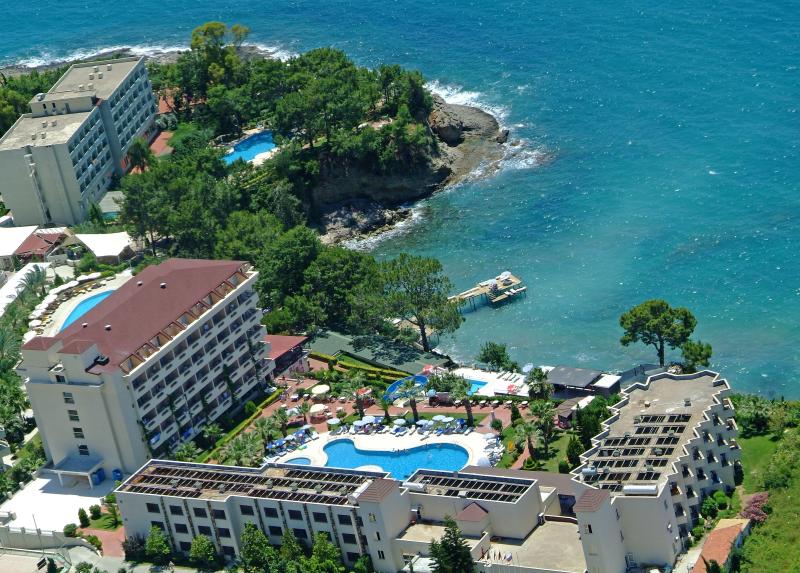 Lokacija Nalazi se u mestu Incekum, na oko 26km od centra Alanje, oko 104km od aerodroma i 114km od centra Antalije. Opšti podaci Hotel je otvoren 2000.godine, ima 174 smeštajne jedinice raspoređene u 3 bloka, od toga je 157 standardnih soba, 16 porodičnih soba i 1 soba za osobe sa posebnim potrebama. Za decu je tu mini club (04 – 12 godina), dečiji meni u glavnom restoranu, mini bioskop. Hotel poseduje glavni restoran, nekoliko barova, a’ la carte restoran. Plaća se : čuvanje dece. Plaža Hotel ima malu plažu i dok. Upotreba ležaljki, suncobrana i peškira se ne naplaćaju. Smeštaj Standardne sobe su opremljene: balkonom, klimom, TV- om, fenom za kosu i mini barom (voda). Veličina standarnih soba je 22 m². Plaća se: sef, telefon, room service. Hrana i piće Usluga u hotelu je all inclusive i uključuje doručak, kasni doručak, ručak, večeru, ponoćnu supu, lokalna alkoholna pića u terminu od 10:00 – 24:00h. Plaćaju se : turska kafa, sva pića posle 00:00h, sva pića u diskoteci, uvozna pića, sveži sokovi, a’ la carte restoran i ostalo van koncepta. Ostali sadržaji Servis za pranje i peglanje veša, lekar, rent a car, frizer, market, butik, fotograf. Sport i zabava Hotel ima bazen, dečiji bazen sa 2 tobogana, fitnes centar, disko, raznna takmičenja, besplatan WiFi internet u lobiju hotela. Plaćaju se: vodeni sportovi, teniski teren sa osvetljenjem i ostalo van koncepta. Spa & wellness Tursko kupatilo i sauna. Plaćaju se: frizer, salon lepote i SPA centar. Napomena Hoteli imaju pravo promene pojedinih usluga, načina plaćanja istih, kao i perioda korišćenja sadržaja, promene koncepta all inclusive, i slično, a u skladu sa svojom poslovnom politikom, vremenskim uslovima i drugim relevantnim činiocima, te organizator putovanja za iste promene ne može snositi odgovornost.