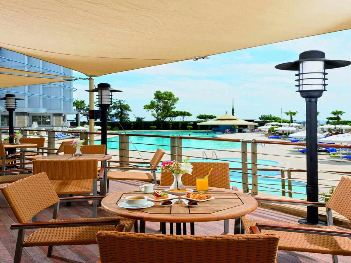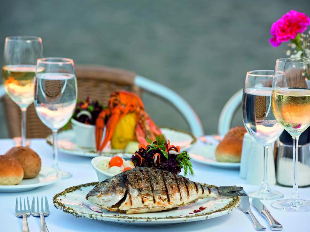 Usluga u hotelu je Ultra All Inclusive (doručak, kasni doručak, ručak, večera, ponoćna supa), samoposluživanje, izbor više jela prema hotelskim pravilima. Pored glavnog restorana tu su i 2 a’ la carte restorana (riblji i italijanski), 5 bara (Pool bar, Lobby bar, Beach bar, Vitamin bar, Moon bar). A la carte restorani se mogu koristiti jednom u toku boravka besplatno, uz prethodnu rezervaciju.