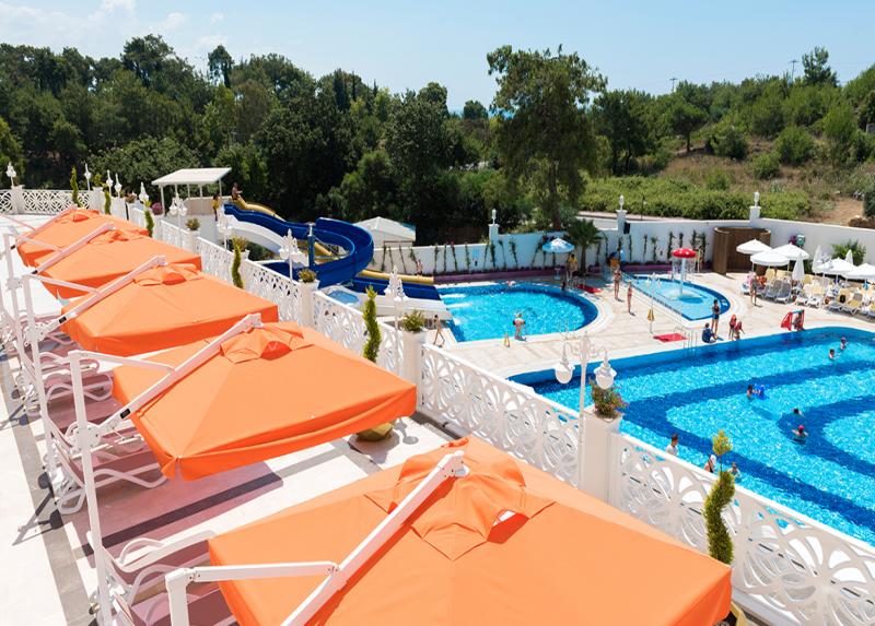Hotel zauzima površinu od 9.000m² i u svom sastavu ima 303 smeštajne jedinice. Od barova i restorana hotel ima 3 bara (Pool bar, Lobby bar i Beach bar), diskoteku, poslastičarnicu, 2 à la carte restorana (turski i italijanski).