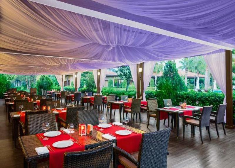 Samoposluživanje – izbor više jela prema hotelskim pravilima u glavnom restoranu: doručak, kasni doručak, ručak, večera i ponoćni obroci, lokalna alkoholna i bezalkoholna pića, pecivo, turske palačinke u raznim delovima hotela u različito doba dana.