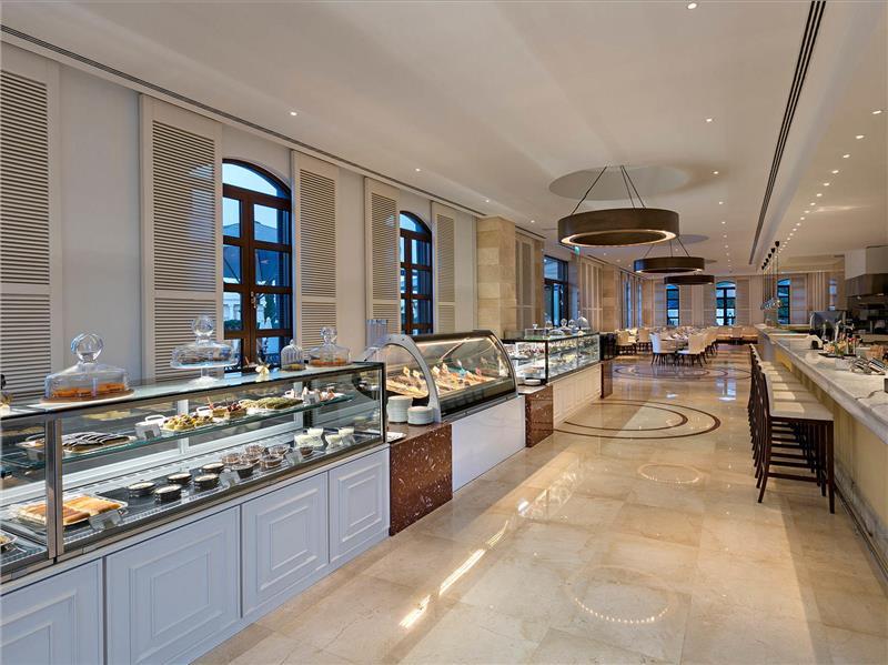 U hotelu se nalazi glavni restoran “Mardan Bistro”, 7 à la carte restorana (od kojih jedan radi 24/7), 20-ak barova i dve poslastičarnice. Gosti takođe mogu uživati u gozlemima, sladoledu, voću u određeno doba dana. Hotel ima i svoj podrum vina koji nudi najeksluzivnija vina iz celog sveta, koji se može posetiti uz prethodnu rezervaciju, i dodatno se doplaćuje.