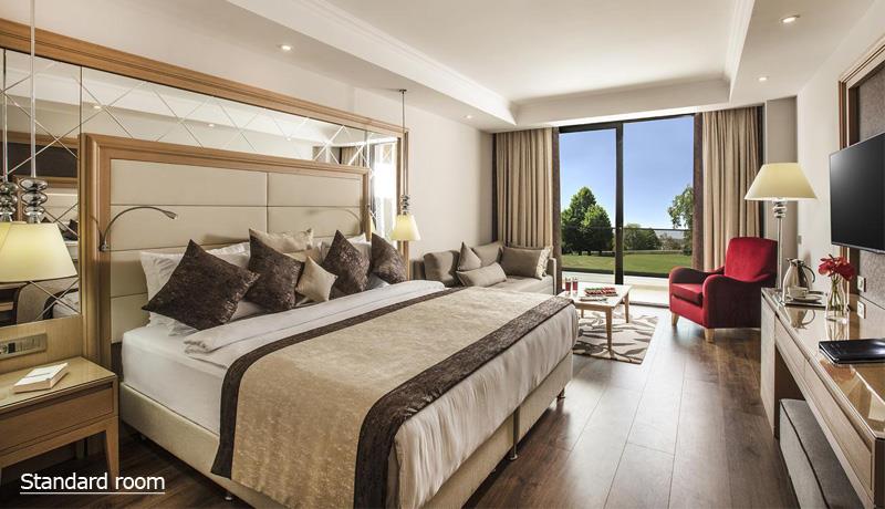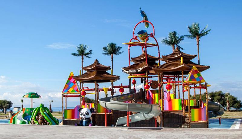 Hotelski sadržaj: recepcija, jaslice za decu od 0-3 godine, frizerski salon, SPA centar, unutrašnji bazen, 5 barova, 4 sale za konferencije (kapaciteta od 80-500 osoba), glavni restoran, hemijsko čišćenje, turski a la carte restoran, azijski a la carte restoran, internacionalni a la carte restoran, riblji a la carte restoran, spoljašnji bazen, bežični internet, doktora, prodavnice, 7 tobogana, saunu, igraonicu, mini golf, nemotorizovane sportove na vodi, diskoteku, parno kupatilo, aerobik, automate za igrice, tenis, slanu sobu, Jacuzzi, masaže, bilijar, odbojku, teretanu, hamam, pikado, motorizovane sportove na vodi, streljaštvo, stoni tenis, košarku, animacije, časove ronjenja, mini fudbal, dečiji bazen, dečiji meni, dečiji klub 4-12 godina, dadilju, lift, butike, menjačnicu, TV salon, biblioteku, kanu i boćanje.