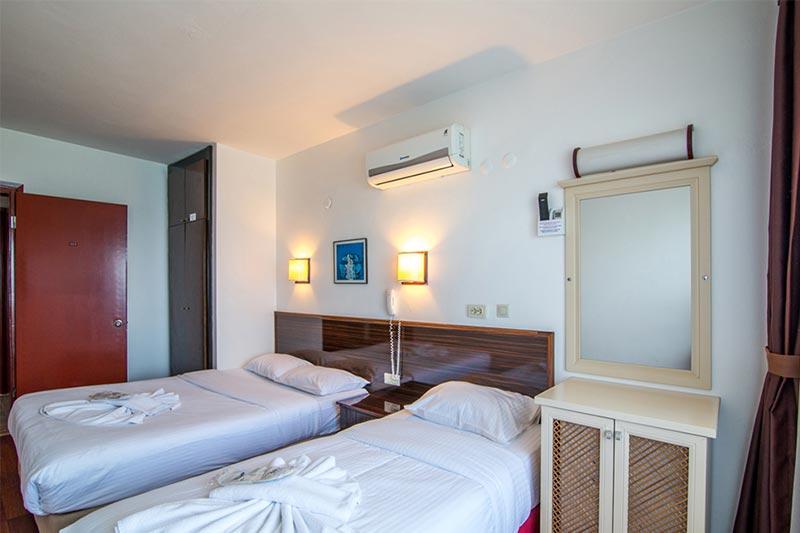 Sobe: svaka soba poseduje terasu, kupatilo, klima uređaj (uračunat u cenu), minibar, telefon Wi-Fi internet (uz doplatu)… Sefovi su dostupni na recepciji (uz doplatu).