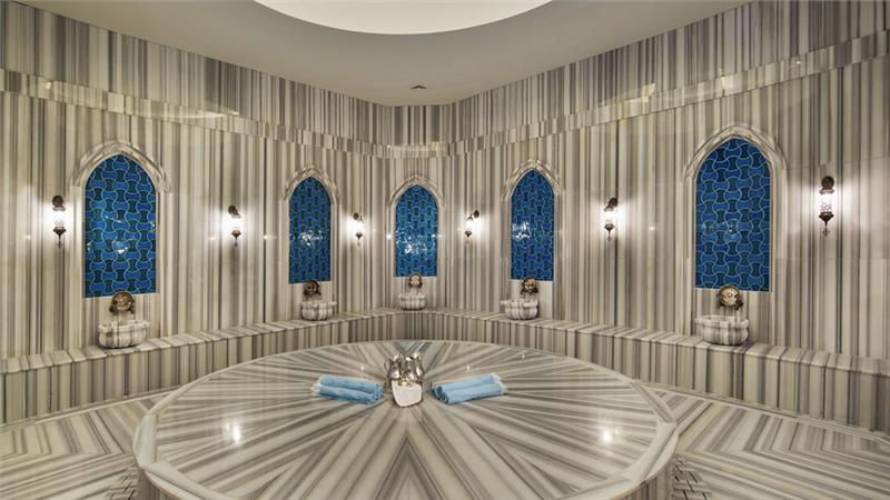 glavni restoran, pet a la carte restorana (italijanski, riblji, turski, azijski i meksički), šest barova, pet otvorenih bazena, bazen za decu, unutrašnji bazen, tursko kupatilo, sauna, masaža, đakuzi, internet (Wi-Fi dostupan na recepciji), frizer, prodavnice.