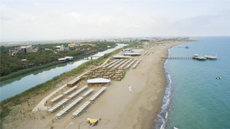 hotel ima privatnu peščanu-šljunkovitu plažu. Između hotela i plaže teče reka (postoji most). Suncobrani i ležaljke su besplatni. Privatni paviljoni na plaži su uz doplatu i uz rezervaciju unapred.