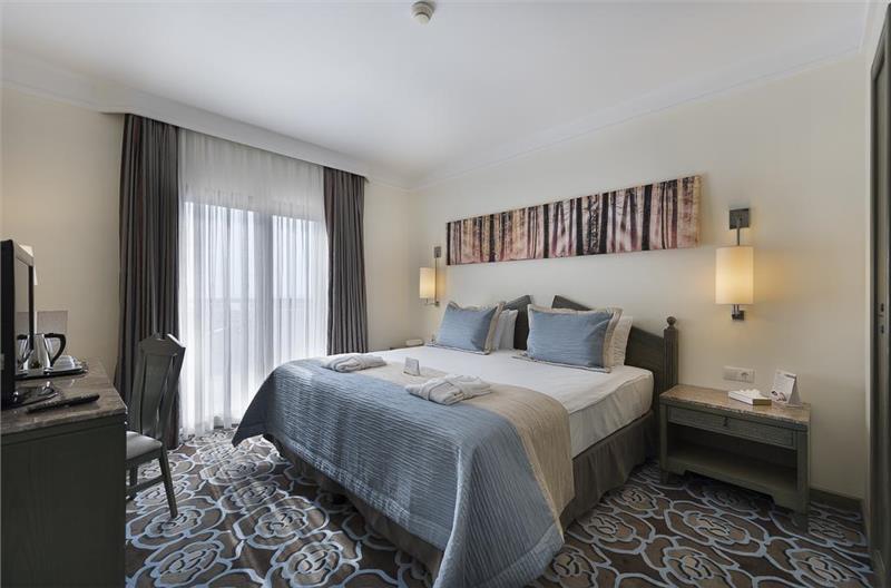 standardne sobe u glavnoj zgradi (cca 26 m2, max 2+1 osoba, spavaća soba, kupatilo); Junior suite u glavnoj zgradi (cca 45 m2, spavaća soba, dnevna soba, kupatilo, max 3+1 osoba); Standardne sobe u bungalovima (cca 26 m2, max 2+1 osoba, spavaća soba, kupatilo, pogled vrt); Bungalov family soba sa jednim kupatilom (cca 45 m2, dve spavaće sobe odvojene vratima, kupatilo, max 4 osobe); Bungalov family soba sa dva kupatila (cca 52 m2, dve spavaće sobe odvojene vratima, dva kupatila, max 4+2 osobe); Bungalov family suite (cca 63 m2, dve spavaće sobe, dnevna soba, kupatilo, max 4+2 osobe). Sve sobe imaju: klima uređaj, SAT TV, Wi-Fi internet, telefon, mini bar (bezalkoholna pića, voda), set za kafu i čaj, sef, kupatilo, fen, balkon ili terasu.