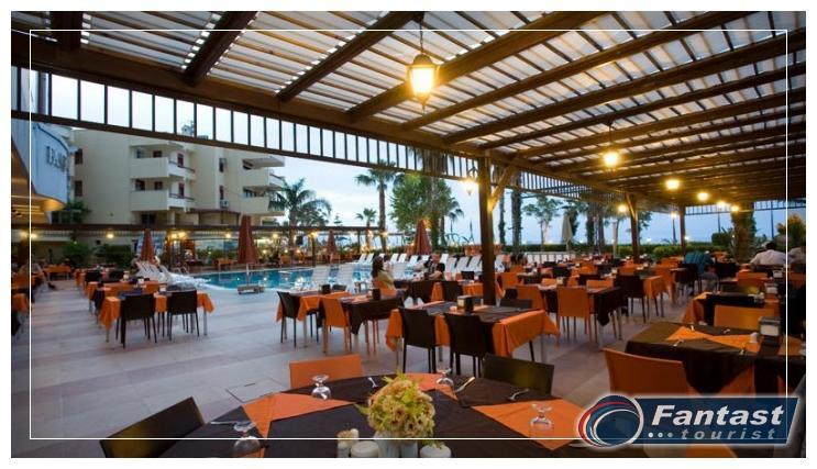 Usluga je All inclusive – samoposluživanje, izbor više jela po hotelskim pravilima u glavnom restoranu: doručak, ručak, večera. Između 11:00h i 16:00h gosti se mogu poslužiti užinom, a u svakom trenutku mogu dobiti lokalna alkoholna i bezalkoholna pića, tople napitke. Hotel nudi i turske palačinke, kafu i kolače u raznim delovima hotela u različito vreme.
