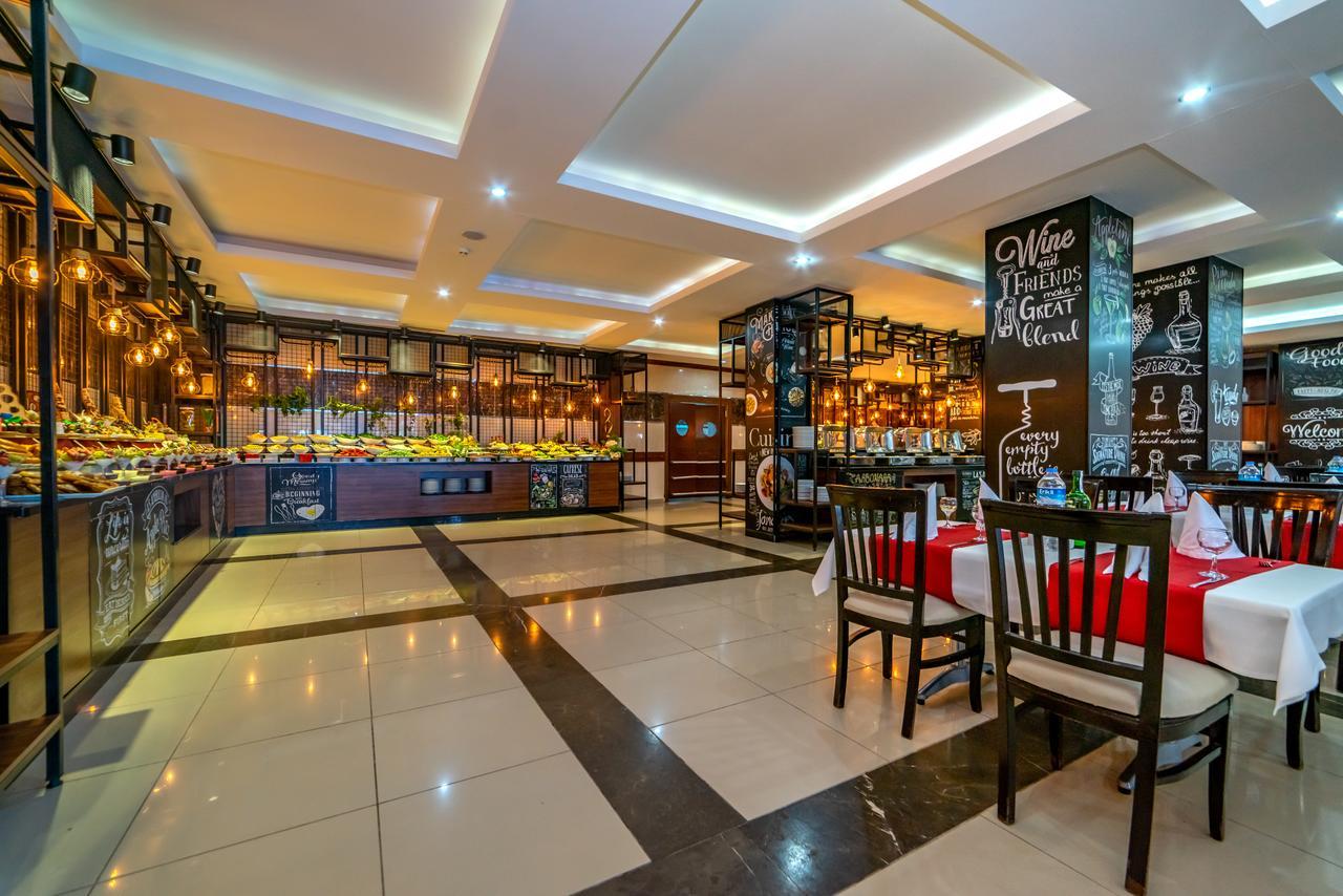 Hotel nudi uslugu All inclusive ( samoposluživanje, izbor više jela po hotelskim pravilima). U glavnom restoranu hotela služe se doručak, kasni doručak, ručak, večera, ponoćna supa i sladoled.