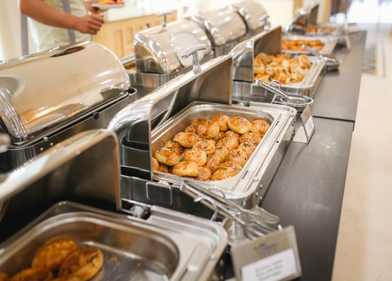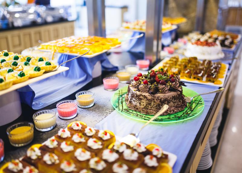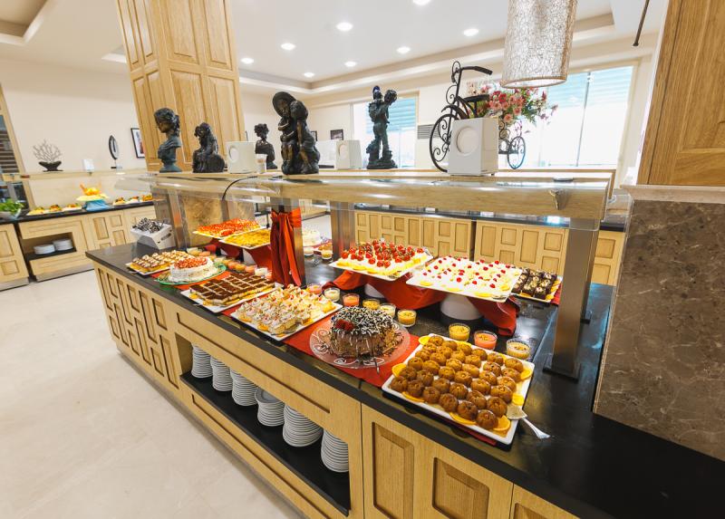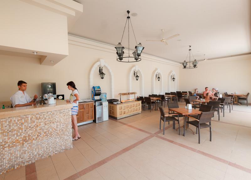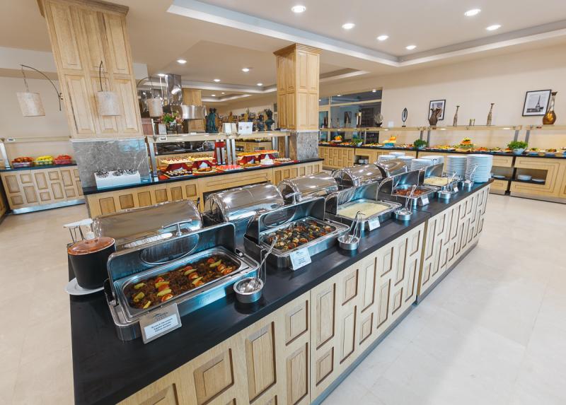 Usluga u hotelu je Ultra All Inclusive – doručak, ručak i večera (samoposluživanje – izbor više jela po hotelskim pravilima). U konceptu su užine, sladoled i lokalna alkoholna i bezalkoholna pića, ponoćna supa, poslastičarnica. U glavnom restoranu postoji dečiji kutak gde se služi kuvana hrana (piletina, brokoli, karfiol itd.) Takođe su dostupni mikrotalasna, blender i sterilizator za flašice besplatno. Pored glavnog restorana, gostima su na raspolaganju i nekoliko barova: Beach, Amphi, Restoran, Snack, Lobby, Annex bar.