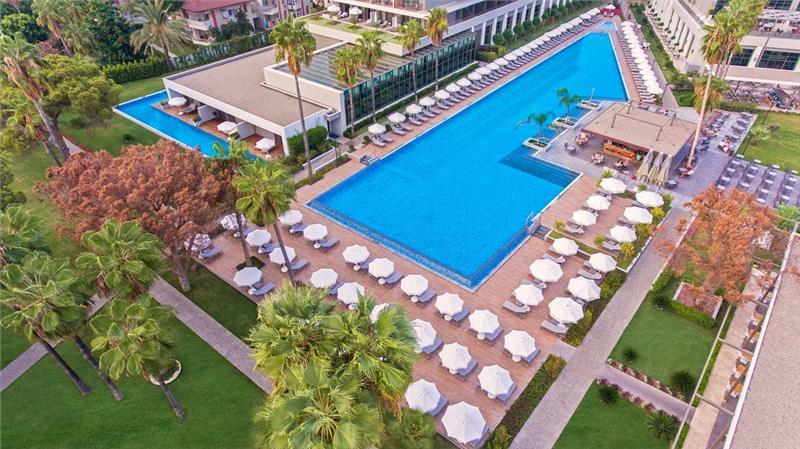 Hotel je otvoren 1987. godine, a renoviran je 2016. godine i prostire se na površini od 24.000 m². Hotel raspolaže sa 260 soba (superior, deluxe, porodične sobe, swim up apartmani i penthouse apartmani). Gostima su na raspolaganju glavni restoran (Palmiye), a la carte restorani (Roka seafood – riblji i Roka sushi – azijska kuhinja, Lavanta – italijanski, Safran – internacionalni), barovi (Panora lobby bar, pool bar, beach club), poslastičarnica, bazeni, Spa centar.