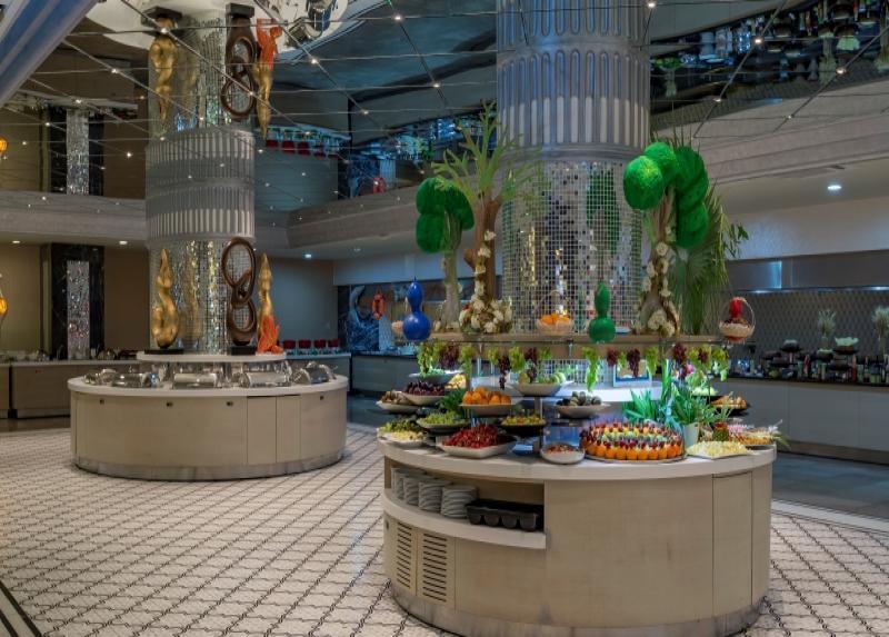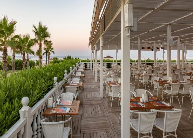 Hotel ima glavni restoran, snack restoran, “Bistro“ restoran, 5 à la carte restorana (italijanski, turski, restoran sa kuhinjom Dalekog istoka, riblji i meksički restoran), 7 barova (Lobby, Pool, Beach, Piano Lobby bar, Bowling bar, Amphi i Disco Bar), poslastičarnicu i diskoteku.